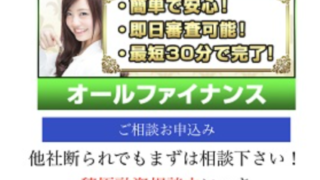 オールファイナンスというスマホサイトで営業しているキャッシングの金融会社は闇金業者なので絶対に関わらないようにしてください!来店不要・即日対応OK!簡単で安心・即日審査可能・最短30分で完了・積極融資相談中日残り融資枠わずかなんて書いていま...
